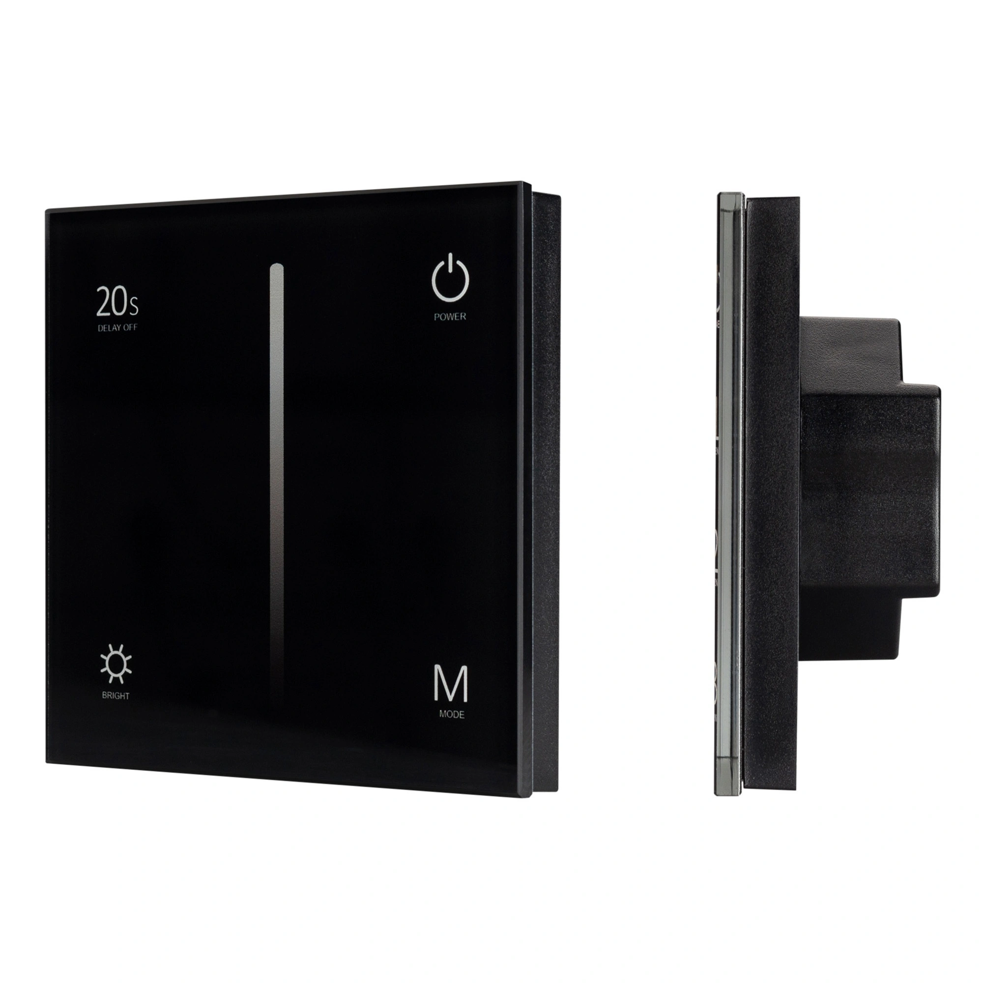 Встраиваемая сенсорная панель, цвет чёрный. Материал - стекло. Выходной сигнал 0/1-10V. Управление яркостью с сенсорной полосы. 1 зона управления. Питание 230V, входное напряжение 86-265VAC. Габариты 86х86х35 мм. Панель совместима с 0/1-10V диммерами.