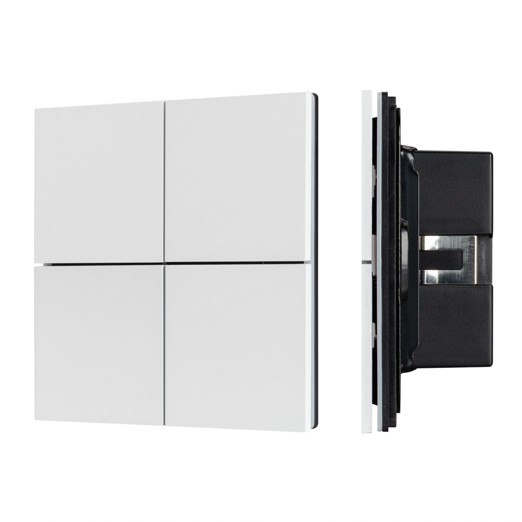 Встраиваемая металлическая панель белого цвета с кнопочным управлением, предназначенная для включения и выключения световых сцен в системах управления светом KNX. Позволяет осуществлять включение/выключение, диммирование, управление шторами и жалюзи, управлять сценами. Поддерживает управление с помощью 4 настраиваемых рокерных клавиш. Каждая клавиша может выполнять функции 2-х клавиш. Устройство совместимо с исполнительными устройствами стандарта KNX, в том числе, мировых производителей ABB, SCHNEIDER ELECTRIC, SIEMENS, ZENNIO и другими. Удобное и точное управление при помощи отдельных механических кнопок для каждой функции. Питание от шины KNX. Габариты устройства составляют 86x86x33 мм, установка в стандартную монтажную коробку. Пластиковый корпус, цвет белый, безрамочный корпус, материал - алюминий, отклик вибрацией, светодиодная индикация.