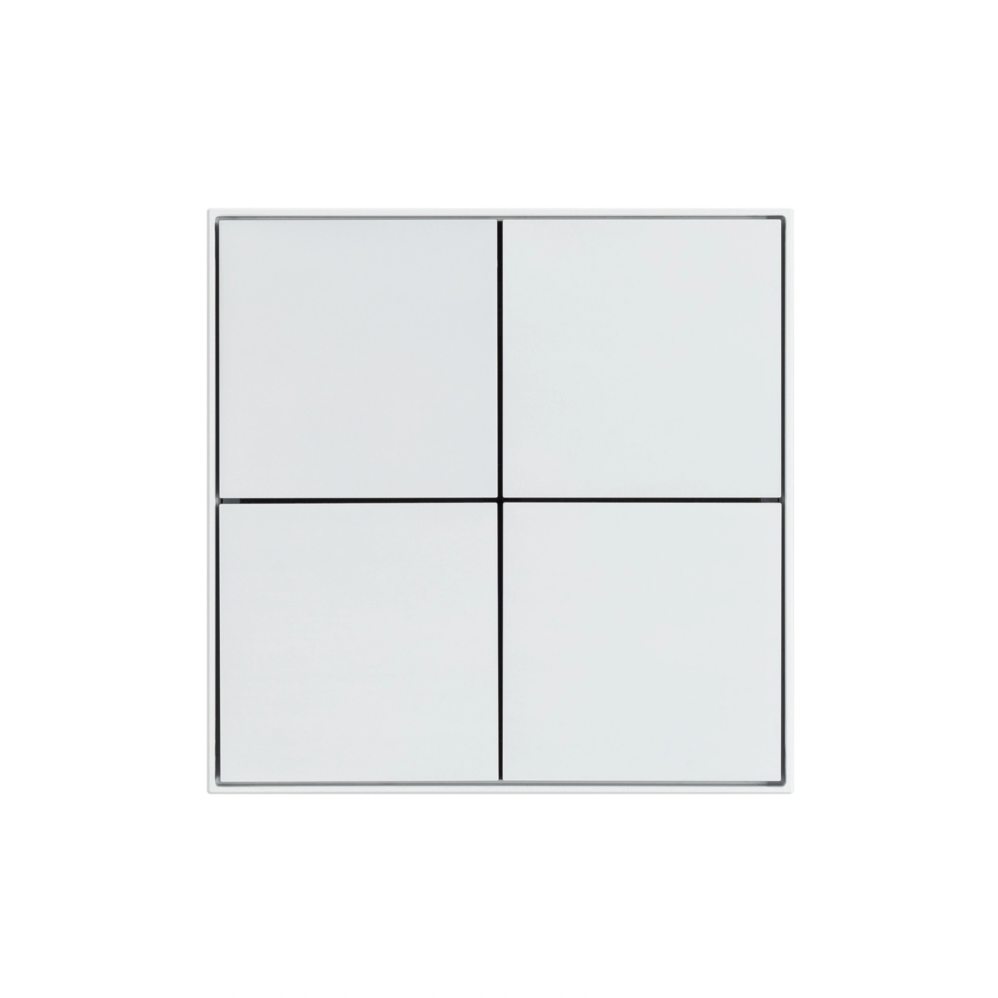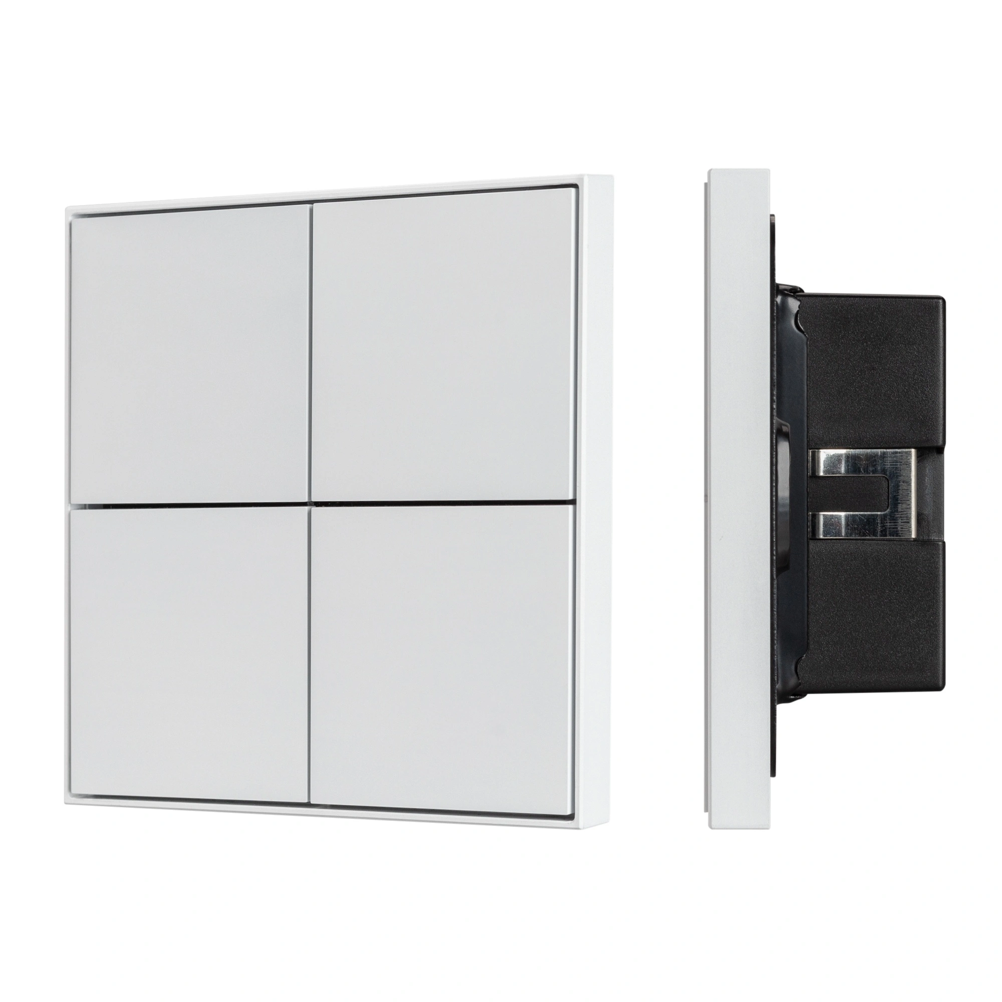 Встраиваемая металлическая панель белого цвета с кнопочным управлением, предназначенная для включения и выключения световых сцен в системах управления светом KNX. Позволяет осуществлять включение/выключение, диммирование, управление шторами и жалюзи, управлять сценами. Поддерживает управление с помощью 4 настраиваемых рокерных клавиш. Каждая клавиша может выполнять функции 2-х клавиш. Устройство совместимо с исполнительными устройствами стандарта KNX, в том числе, мировых производителей ABB, SCHNEIDER ELECTRIC, SIEMENS, ZENNIO и другими. Удобное и точное управление при помощи отдельных механических кнопок для каждой функции. Питание от шины KNX. Габариты устройства составляют 86x86x33 мм, установка в стандартную монтажную коробку. Пластиковый корпус, цвет белый, тонкая рамка, материал - алюминий, отклик вибрацией, светодиодная индикация.