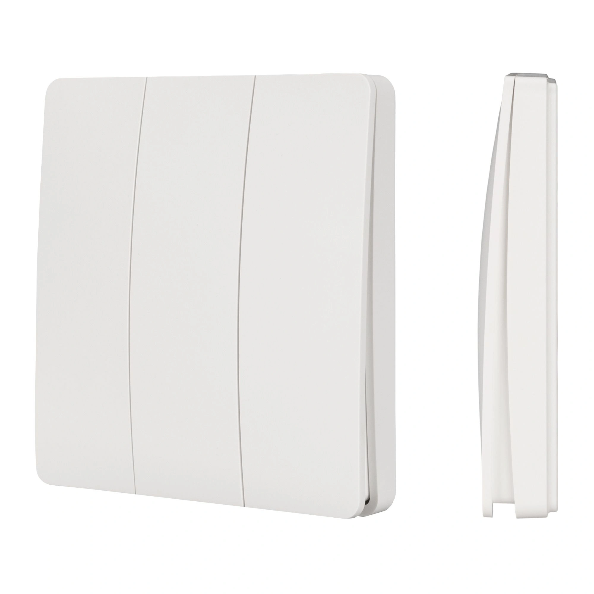 Накладная кнопочная панель белого цвета, изготовленная из пластика. Предназначена для управления одноцветными источниками света (ШИМ) с помощью кнопок. Основные выполняемые функции: включение и выключение света, регулировка яркости. Удобное и точное управление с помощью эргономичных кнопок. Изделие применяется в качестве трёхзонного пульта дистанционного управления диммерами и релейными модули серий TUYA-***-WF и TY-***-WF, поддерживающими управление по радиоканалу 433MHz. Не требует питания, имеет встроенный кинетический источник питания. Габариты панели 86х86х14 мм, корпус выполнен из пластика. Устройство устанавливается на любую поверхность, к которой возможно прикрутить монтажную базу панели.