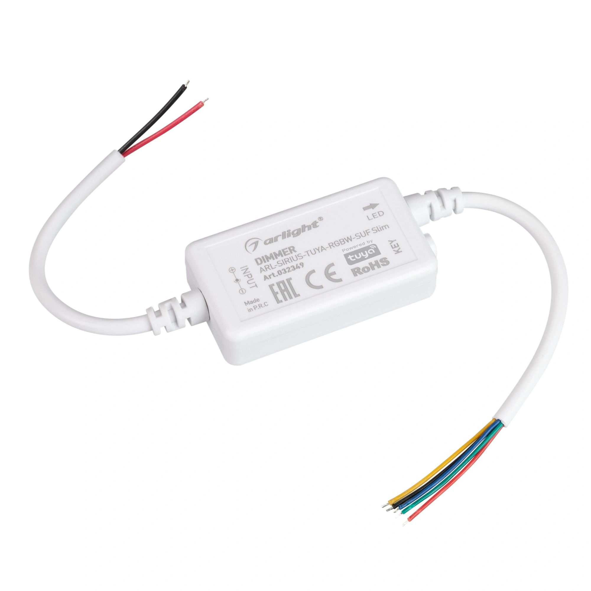 Миниатюрный диммер для управления мультицветной (RGBW) светодиодной лентой по ШИМ и другими светодиодными источниками света с напряжением питания 12-24В. Выполняет основные фукнции: включение/выключение, регулировка яркости, изменение цвета. Cовместим беспроводной облачной платформой TUYA и АЛИСА от ЯНДЕКС. Управление со смартфона через приложение SMART LIFE. Устройство совместимо с радиочастотными пультами дистанционного управления серии SIRIUS. Питание от 12-24В, максимальная нагрузка 1.5А на канал, 4 канала управления, выходная мощность 72-144 Вт (в зависимости от напряжения питания). Габариты устройства 48х26х13 мм (габариты проводов 150x10x10 мм).