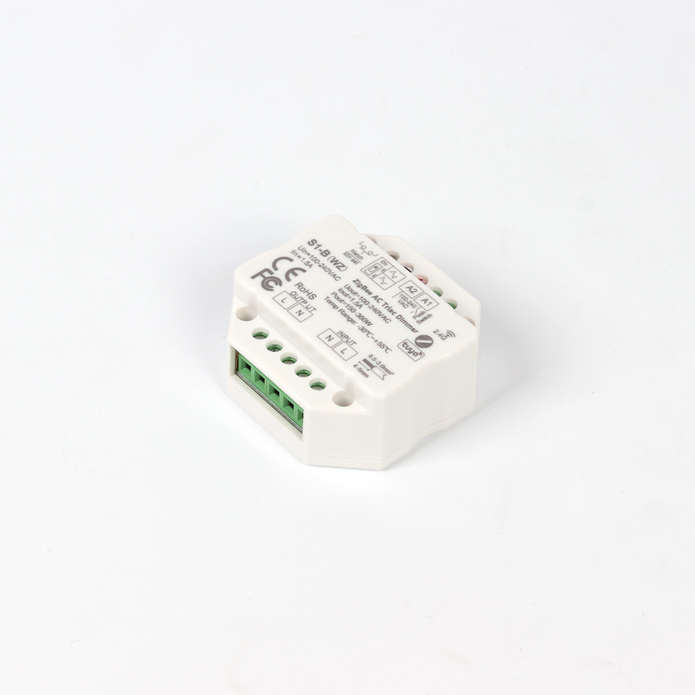 Диммер SS-B(WZ) Triac. Поддержка управления по 2.4Ghz, ZigBee, tuya. Входное напряжение 100-240VAC, выходное напряжение 100-240VAC, выходной ток 1.5A, максимальная мощность 150-360W. Работает с пультами серии ICLED PRO. Дальность действия управления по радиосигналу до 30м (прямая видимость без препятствий). Рабочая температура от -30 до +55 градусов. Степень защиты IP20. Гарантия 5 лет. Размеры 52х52х26 мм. Размеры упаковки 55x55x35 мм. Вес 60г.